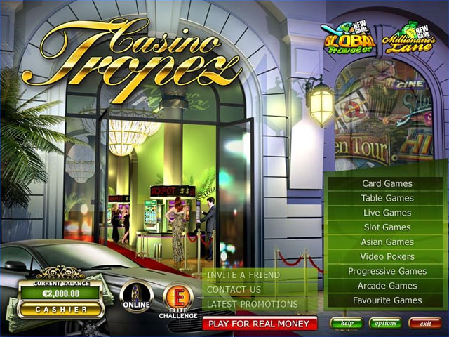 Казино Tropez представляет вашему вниманию более 80 игр, начиная от игровых автоматов и заканчивая карточными играми, а между ними – практически все что угодно. Раздел настольных игр казино Tropez представлен такими играми, как рулетка, блэкджек, кости, баккара и покер. Помимо этого, здесь присутствует большое количество игровых автоматов и автоматов для видео-покера. Некоторые автоматы предлагают прогрессивный джек-пот, в прошлом достигавший неимоверных сумм, и который постоянно держится на высоком уровне. Выбор игр не так уж и велик, тем не менее, здесь каждый сможет найти что-то по душе – и это то, чем очень импонирует казино Tropez.
